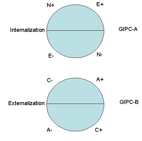In recent years, a consensus has been building on the structure of personality traits. It appears that five broad dimensions--extraversion, agreeableness, conscientiousness, neuroticism, and openness to experience--are necessary to describe personality across many cultures (e.g., Digman, 1990; Goldberg, 1993; McCrae & Costa, 1997; Wiggins, 1996). In addition, recent studies have converged on a common structure of psychological disorders. It appears that two broad dimensions, internalization (feeling bad) and externalization (making others feel bad), are necessary to describe psychopathology in many large-scale epidemiological and treatment-seeking samples in multiple cultures (e.g., Acton, 2003; Acton, Kunz, Wilson, & Hall, 2005; Bienvenu et al., 2004; Burt, Krueger, McGue, & Iacono, 2001, 2003; Cooper, Wood, Orcutt, & Albino, 2003; Hicks, Krueger, Iacono, McGue, & Patrick, 2004; Hudson et al., 2003; Hudson & Pope, 1990; Iacono, Carlson, Malone, & McGue, 2002; Kendler, Neale, Kessler, Heath, & Eaves, 1992a, 1992b; Kendler, Prescott, Myers, & Neale, 2003; Kendler et al., 1995; Krueger, 1999; Krueger, Caspi, Moffitt, & Silva, 1998; Krueger, Chentsova-Dutton, Markon, Goldberg, & Ormel, 2003; Krueger et al., 2002; Krueger & Finger, 2001; Lahey et al., 2004; Nestadt et al., 2001; Vollebergh et al., 2001). In order to provide a framework for understanding these robust findings, the GIPT draws upon several theoretical traditions. Chief among these is the interpersonal theory of personality (e.g., Acton & Revelle, 2002, 2004; Carson, 1969; Kiesler, 1983; Leary, 1957; Wiggins, 1979). The GIPT expands and reformulates key elements of classical interpersonal theory while preserving other important elements.For example, the GIPT expands the definition of what is considered interpersonal. Formerly, only the traits of extraversion and agreeableness were included in the interpersonal circle (McCrae & Costa, 1989). The GIPT includes a structural model with an extraversion-neuroticism circle of temperament (the Generalized Interpersonal Circumplex A, GIPC-A) and an agreeableness-conscientiousness circle of character (the Generalized Interpersonal Circumplex B, GIPC-B) (Figure 1) (cf. Hofstee, de Raad, & Goldberg, 1992). This structural model comprises a construct map (Wilson, 2005) for the interpersonal domain. Because openness is more cognitive in nature and does not appear to have direct affective consequences (Watson, 2000), because it is the least consistently found cross-culturally of the Big Five (De Raad, Perugini, Hrebickova, & Szarota, 1998; Saucier & Goldberg, 2001), and because it appears to have limited relevance to psychopathology (O'Connor & Dyce, 1998; Widiger, 1993), it is not included in the structural model.